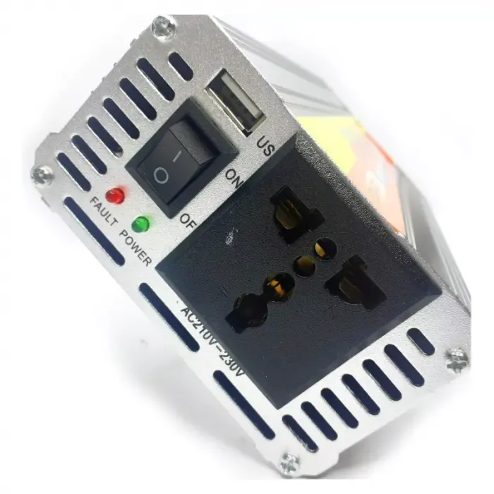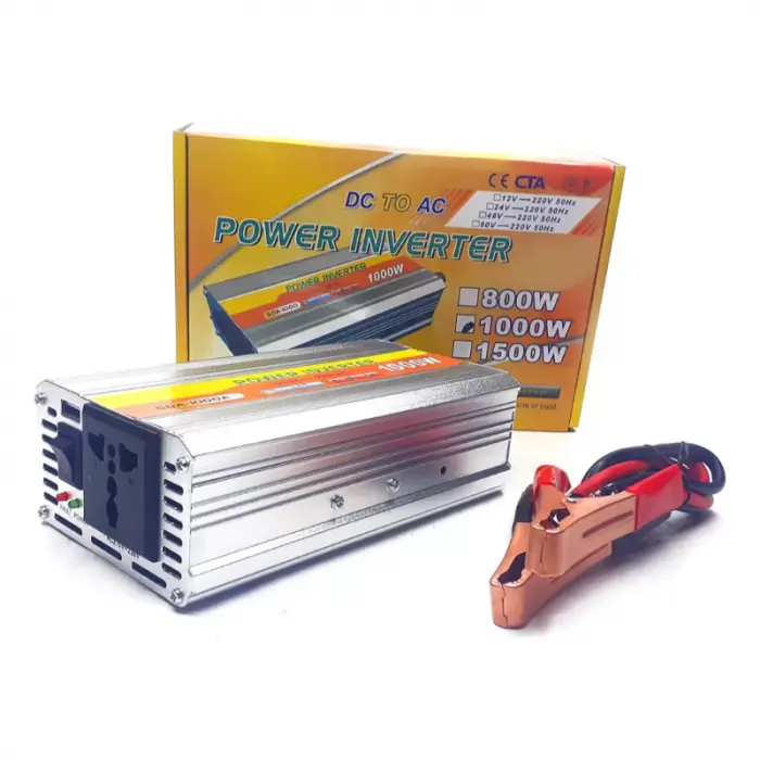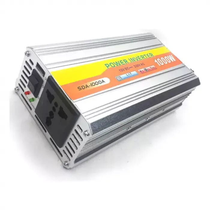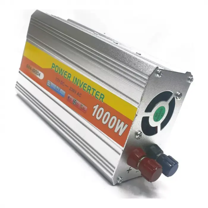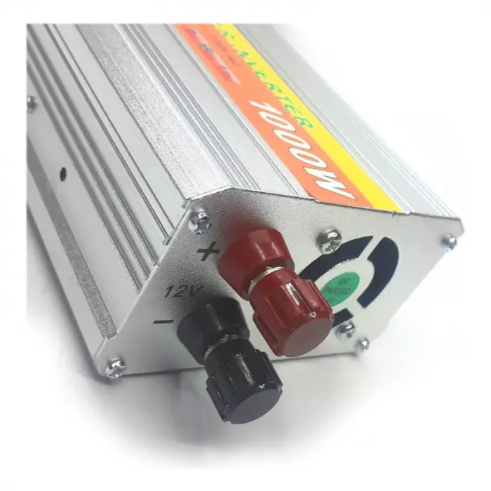 Este Inversor Convertidor de 1000W con capacidad de pico de 2000W, transforma la corriente de 12V DC a 220V AC. Cuenta con protección de sobrecarga y capacidad adicional de onda. Dispone de un puerto USB +5V y un indicador LED que muestra el estado de funcionamiento del dispositivo. El indicador LED muestra luz verde cuando el dispositivo funciona normalmente y luz roja cuando se presenta una sobrecarga, sobretensión, baja tensión, alta temperatura, deteniéndose automáticamente.