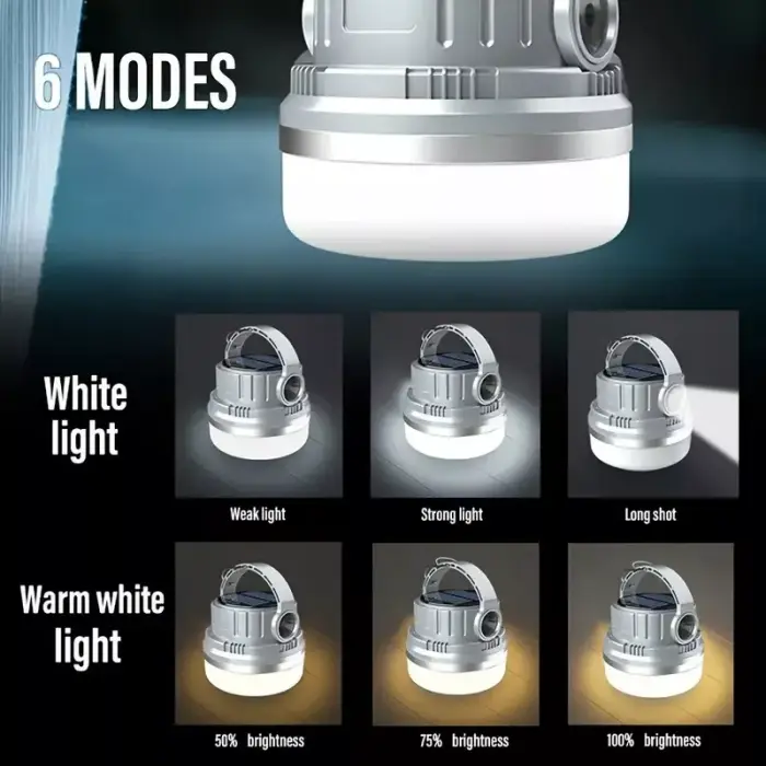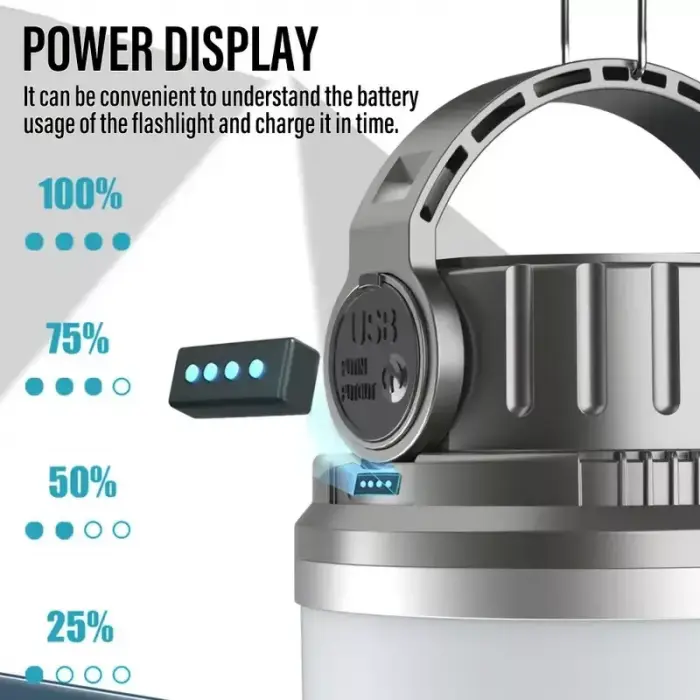Esta linterna la podes cargar por USB con su cable tipo C incluido y también directamente dejándola bajo el sol permitiendo que su panel solar absorba totalmente los rayos del sol convirtiéndolos en energía almacenada para después usarse. Despreocúpate por tener luz cuando vayas al campo.