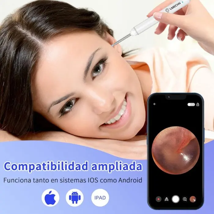 Dispositivo innovador para el cuidado auditivo que permite una limpieza precisa, cómoda y segura. Incorpora una micro cámara de alta definición conectada por WiFi para visualizar en tiempo real el interior del oído desde tu celular.