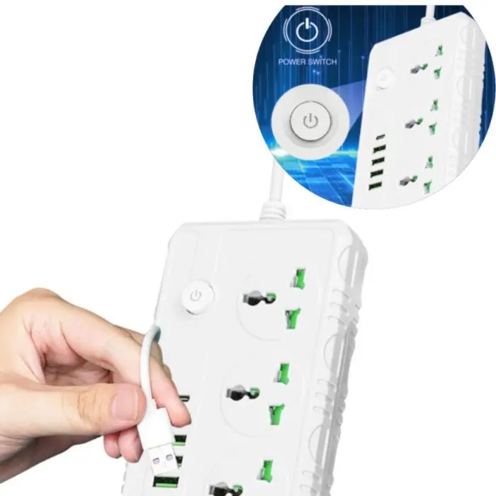 Zapatilla Prolongadora con 3 Tomas + 4 Puertos USB + 1 Tipo C